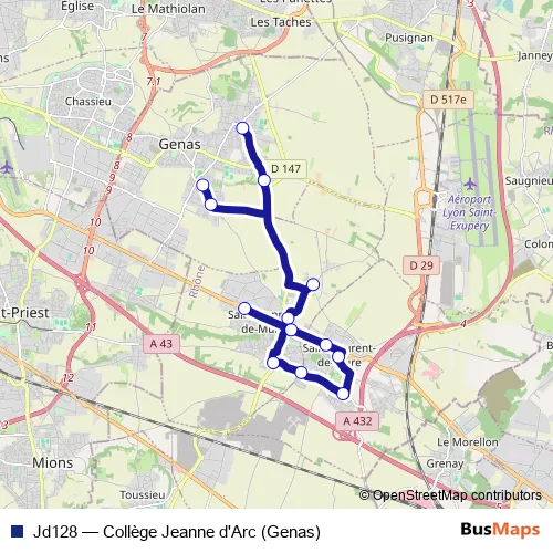 See why over 2 million users trust and consider busmaps.com as the best public transport website. busmaps gives you Lyon Buses suggested routes, real-time bus tracker, line route maps in Lyon, and helps to find the closest Jd128 bus stops near you. No internet available? Download an offline PDF map and bus schedule for the Jd128 bus to take on your trip.