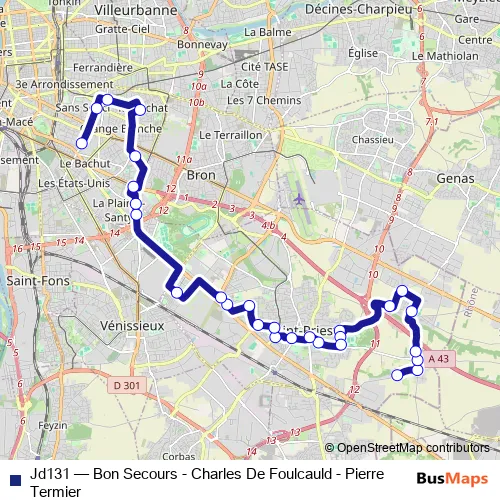 See why over 2 million users trust and consider busmaps.com as the best public transport website. busmaps gives you Lyon Buses suggested routes, real-time bus tracker, line route maps in Lyon, and helps to find the closest Jd131 bus stops near you. No internet available? Download an offline PDF map and bus schedule for the Jd131 bus to take on your trip.