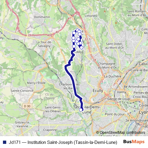 See why over 2 million users trust and consider busmaps.com as the best public transport website. busmaps gives you Lyon Buses suggested routes, real-time bus tracker, line route maps in Lyon, and helps to find the closest Jd171 bus stops near you. No internet available? Download an offline PDF map and bus schedule for the Jd171 bus to take on your trip.