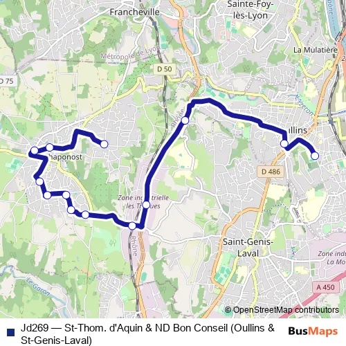 Click here to view the nearest Jd269 - St-Thom. d'Aquin & ND Bon Conseil (Oullins & St-Genis-Laval) bus stop.