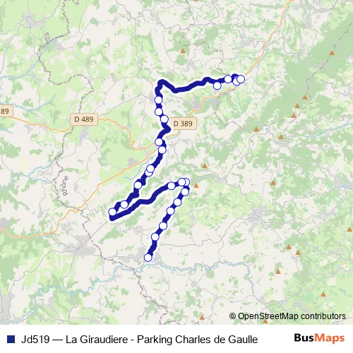 The first stop of the Jd519 bus route is St-Symphorien - Pkg Cdg and the last stop is Brussieu - La Giraudiere. Jd519 (La Giraudiere - Parking Charles de Gaulle) is operational during entre semana.
