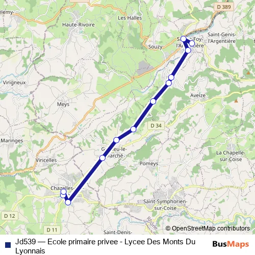 Click here to view the nearest Jd539 - Ecole primaire privee - Lycee Des Monts Du Lyonnais bus stop.