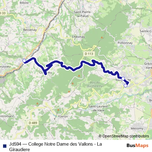 Bus Jd594 - College Notre Dame des Vallons - La Giraudiere: Full Schedule in Vaugneray
