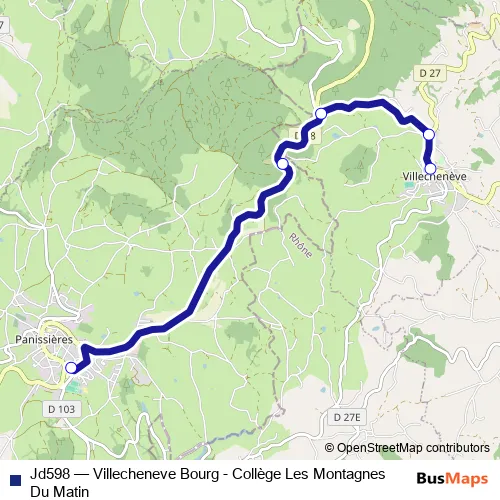 Bus Jd598 - Villecheneve Bourg - Collège Les Montagnes Du Matin: Full Schedule in Villecheneve
