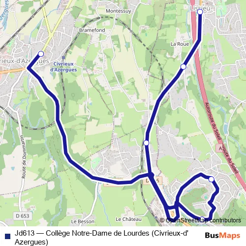 Click here to view the nearest Jd613 - Collège Notre-Dame de Lourdes (Civrieux-d'Azergues) bus stop.