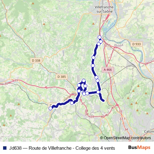 The first stop of the Jd638 bus route is L'Arbresle - Collège 4 Vents and the last stop is Anse - Route De Villefranche. Jd638 (Route de Villefranche - College des 4 vents) is operational during entre semana.
