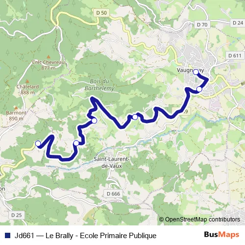 The first stop of the Jd661 bus route is Vaugneray - Ecole Primaire and the last stop is Yzeron - La Brally. Jd661 (Le Brally - Ecole Primaire Publique) is operational during entre semana.