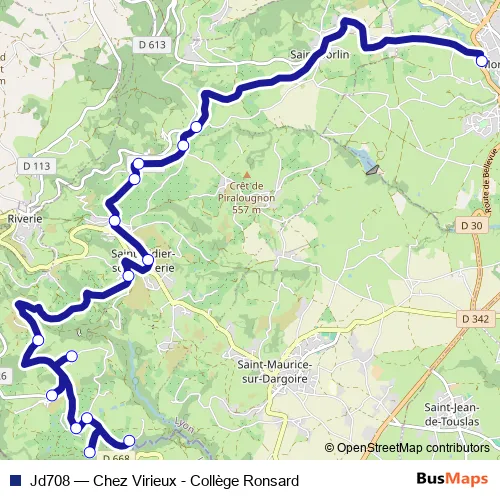 Bus Jd708 - Chez Virieux - Collège Ronsard in Saint-Didier-sous-Riverie: Stops & Timetable