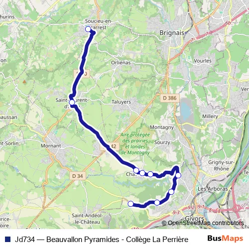 See why over 2 million users trust and consider busmaps.com as the best public transport website. busmaps gives you Lyon Buses suggested routes, real-time bus tracker, line route maps in Lyon, and helps to find the closest Jd734 bus stops near you. No internet available? Download an offline PDF map and bus schedule for the Jd734 bus to take on your trip.