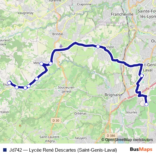 See why over 2 million users trust and consider busmaps.com as the best public transport website. busmaps gives you Lyon Buses suggested routes, real-time bus tracker, line route maps in Lyon, and helps to find the closest Jd742 bus stops near you. No internet available? Download an offline PDF map and bus schedule for the Jd742 bus to take on your trip.