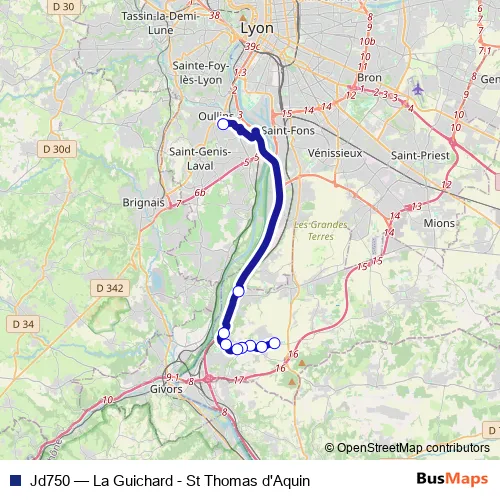 Bus Jd750 - La Guichard - St Thomas d'Aquin in Communay: Stops & Timetable
