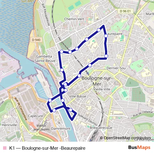 See why over 2 million users trust and consider busmaps.com as the best public transport website. busmaps gives you Boulogne-sur-Mer Buses suggested routes, real-time bus tracker, line route maps in Boulogne-sur-Mer, and helps to find the closest K1 bus stops near you. No internet available? Download an offline PDF map and bus schedule for the K1 bus to take on your trip.