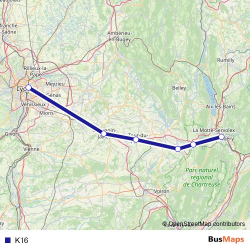 See why over 2 million users trust and consider busmaps.com as the best public transport website. busmaps gives you Chambery Rail Services suggested routes, real-time bus tracker, line route maps in Chambery, and helps to find the closest K16 rail stops near you. No internet available? Download an offline PDF map and bus schedule for the K16 rail to take on your trip.
