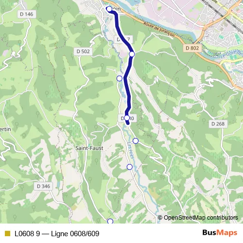The first stop of the L0608 9 bus route is Laroin Chemin du Stade and the last stop is Saint Faust Baudorre. L0608 9 (Ligne 0608/609) is operational during entre semana.