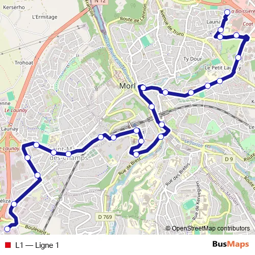 See why over 2 million users trust and consider busmaps.com as the best public transport website. busmaps gives you Morlaix Buses suggested routes, real-time bus tracker, line route maps in Morlaix, and helps to find the closest L1 bus stops near you. No internet available? Download an offline PDF map and bus schedule for the L1 bus to take on your trip.