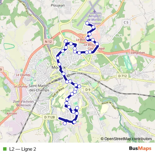 See why over 2 million users trust and consider busmaps.com as the best public transport website. busmaps gives you Morlaix Buses suggested routes, real-time bus tracker, line route maps in Morlaix, and helps to find the closest L2 bus stops near you. No internet available? Download an offline PDF map and bus schedule for the L2 bus to take on your trip.