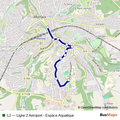 See why over 2 million users trust and consider busmaps.com as the best public transport website. busmaps gives you Morlaix Buses suggested routes, real-time bus tracker, line route maps in Morlaix, and helps to find the closest L2 bus stops near you. No internet available? Download an offline PDF map and bus schedule for the L2 bus to take on your trip.