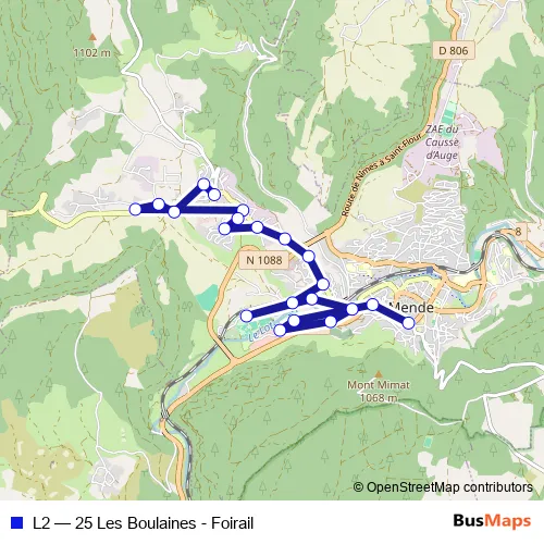 Bus L2 - 25 Les Boulaines - Foirail in Mende: Stops & Timetable