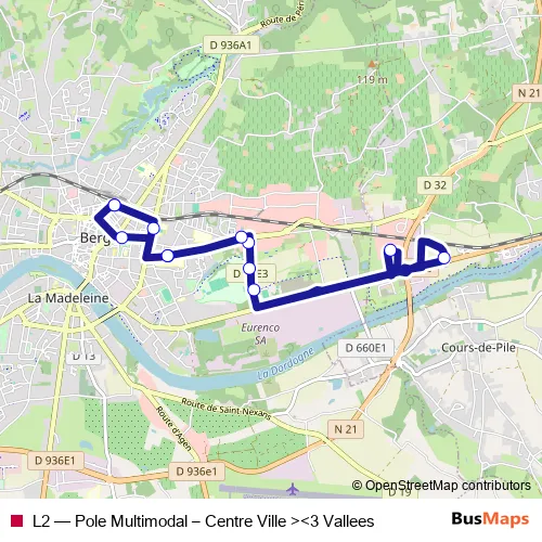 See why over 2 million users trust and consider busmaps.com as the best public transport website. busmaps gives you Bergerac Buses suggested routes, real-time bus tracker, line route maps in Bergerac, and helps to find the closest L2 bus stops near you. No internet available? Download an offline PDF map and bus schedule for the L2 bus to take on your trip.
