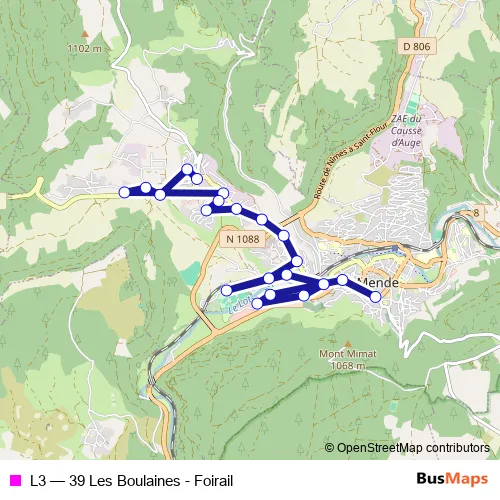 Bus L3 - 39 Les Boulaines - Foirail in Mende: Stops & Timetable