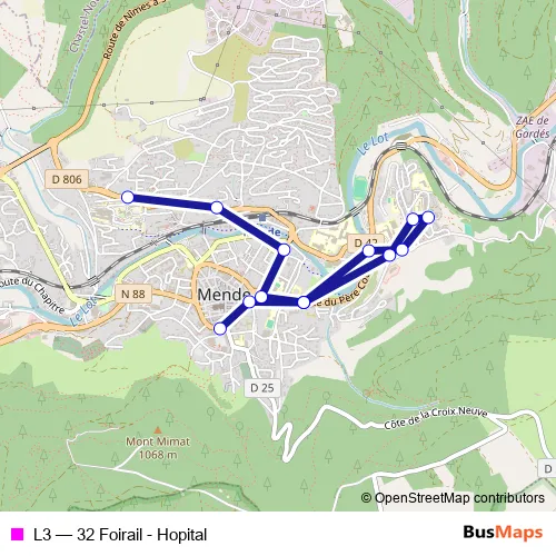 Bus L3 - 32 Foirail - Hopital in Mende: Stops & Timetable