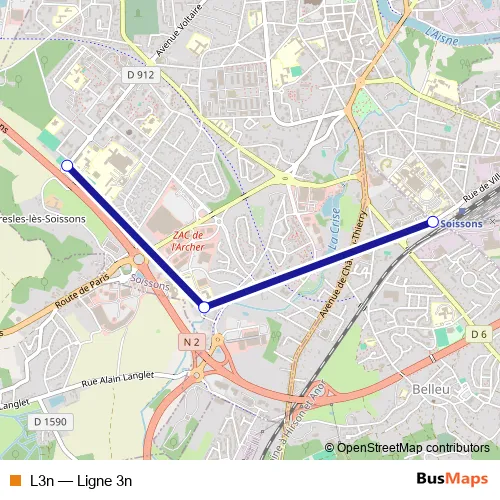 See why over 2 million users trust and consider busmaps.com as the best public transport website. busmaps gives you Soissons Buses suggested routes, real-time bus tracker, line route maps in Soissons, and helps to find the closest L3n bus stops near you. No internet available? Download an offline PDF map and bus schedule for the L3n bus to take on your trip.