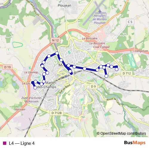 See why over 2 million users trust and consider busmaps.com as the best public transport website. busmaps gives you Morlaix Buses suggested routes, real-time bus tracker, line route maps in Morlaix, and helps to find the closest L4 bus stops near you. No internet available? Download an offline PDF map and bus schedule for the L4 bus to take on your trip.