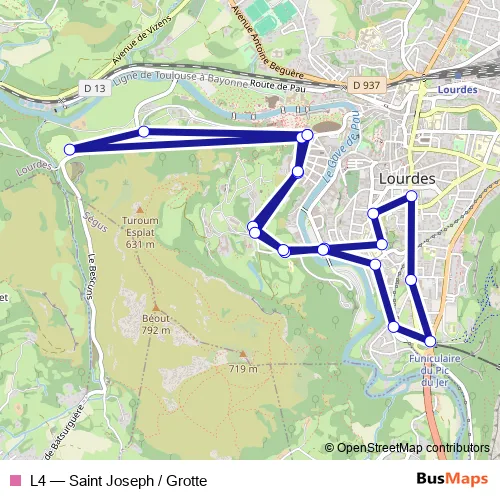 See why over 2 million users trust and consider busmaps.com as the best public transport website. busmaps gives you Lourdes Buses suggested routes, real-time bus tracker, line route maps in Lourdes, and helps to find the closest L4 bus stops near you. No internet available? Download an offline PDF map and bus schedule for the L4 bus to take on your trip.