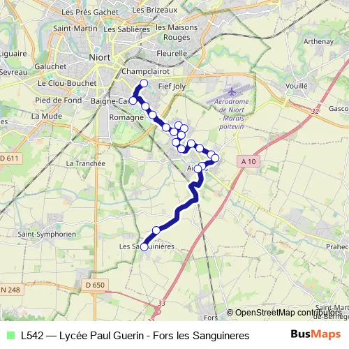 Click here to view the nearest L542 - Lycée Paul Guerin - Fors les Sanguineres bus stop.