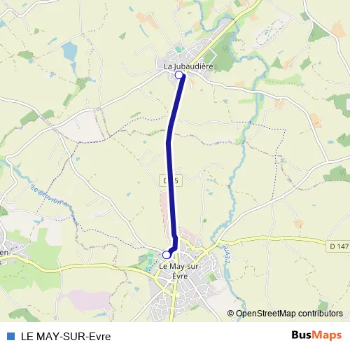 Additional information: LE MAY-SUR-Evre has 2 stops and the total trip duration for this route is approximately 5 minutes.