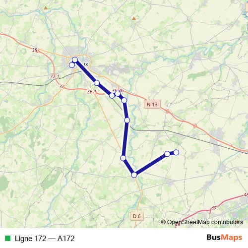 Additional information: Ligne 172 has 11 stops and the total trip duration for this route is approximately 42 minutes.