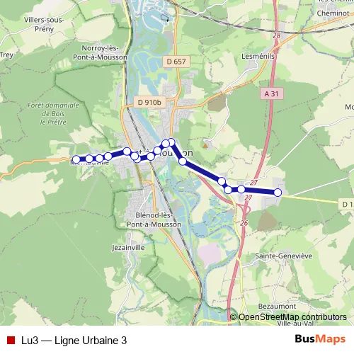 See why over 2 million users trust and consider busmaps.com as the best public transport website. busmaps gives you Pont-a-Mousson Buses suggested routes, real-time bus tracker, line route maps in Pont-a-Mousson, and helps to find the closest Lu3 bus stops near you. No internet available? Download an offline PDF map and bus schedule for the Lu3 bus to take on your trip.