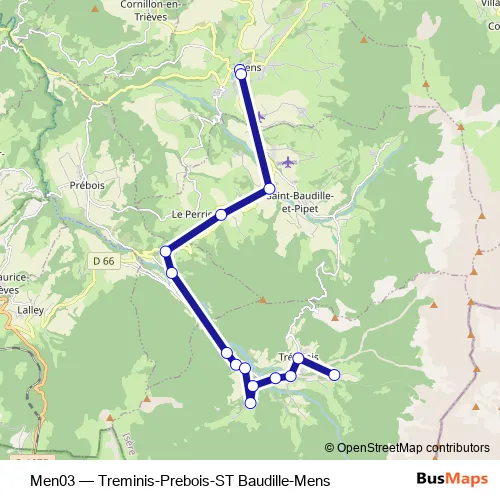 Bus Men03 - Treminis-Prebois-ST Baudille-Mens: Full Schedule in Mens