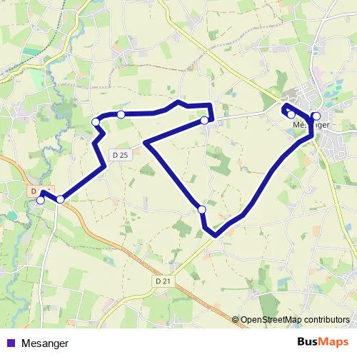 The first stop of the Mesanger bus route is Abribus Pont Esnault and the last stop is Ec Priv St Joseph M. Mesanger is operational during todos los días.