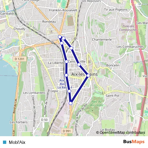 See why over 2 million users trust and consider busmaps.com as the best public transport website. busmaps gives you Aix-les-Bains Buses suggested routes, real-time bus tracker, line route maps in Aix-les-Bains, and helps to find the closest Mobi'Aix bus stops near you. No internet available? Download an offline PDF map and bus schedule for the Mobi'Aix bus to take on your trip.