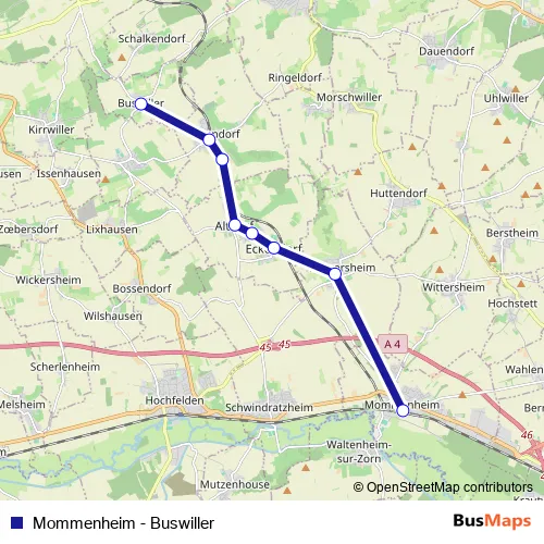 See why over 2 million users trust and consider busmaps.com as the best public transport website. busmaps gives you Ettendorf Buses suggested routes, real-time bus tracker, line route maps in Ettendorf, and helps to find the closest Mommenheim - Buswiller bus stops near you. No internet available? Download an offline PDF map and bus schedule for the Mommenheim - Buswiller bus to take on your trip.