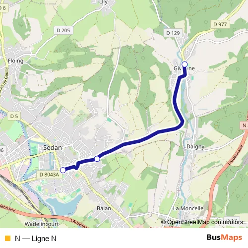 See why over 2 million users trust and consider busmaps.com as the best public transport website. busmaps gives you Sedan Buses suggested routes, real-time bus tracker, line route maps in Sedan, and helps to find the closest N bus stops near you. No internet available? Download an offline PDF map and bus schedule for the N bus to take on your trip.