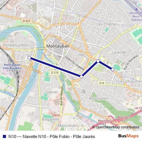 Bus N10 - Navette N10 - Pôle Fobio - Pôle Jaurès: Full Schedule in Montauban