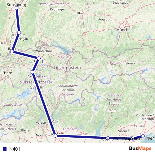 Rue de la Première Armée - Freiburg ZOB - Meret Oppenheim-Strasse - Sihlquai - Inseliquai - Viale Cardinale Girolamo - Via Frà Paolo Sarpi - Viale Stazione