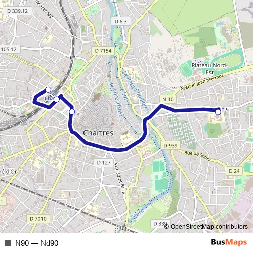 See why over 2 million users trust and consider busmaps.com as the best public transport website. busmaps gives you Chartres Buses suggested routes, real-time bus tracker, line route maps in Chartres, and helps to find the closest N90 bus stops near you. No internet available? Download an offline PDF map and bus schedule for the N90 bus to take on your trip.