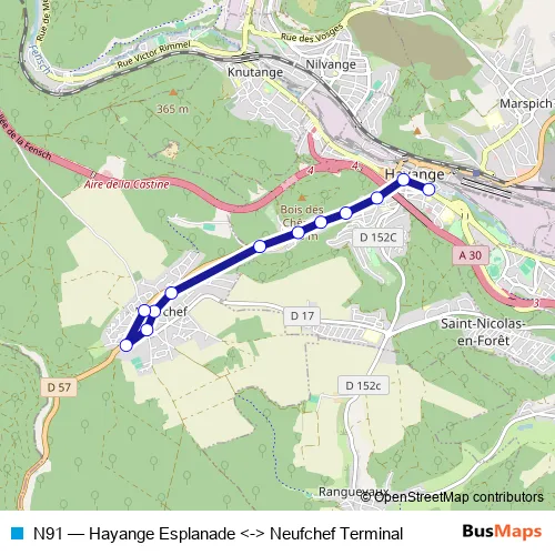 Click here to view the nearest N91 - Hayange Esplanade <-> Neufchef Terminal bus stop.