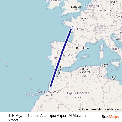 Click here to view the nearest NTE-Aga - Nantes Atlantique Airport-Al Massira Airport bus stop.