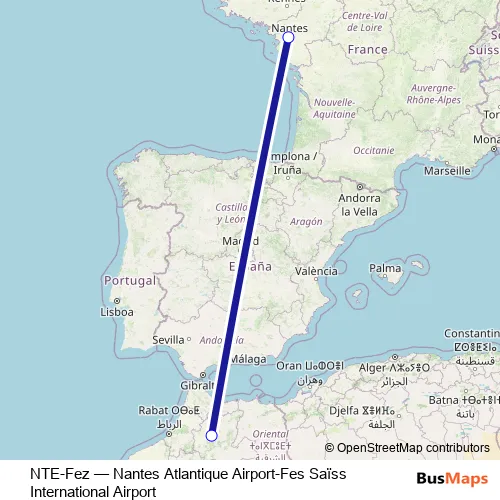 Bus NTE-Fez - Nantes Atlantique Airport-Fes Saïss International Airport Schedule in Nantes