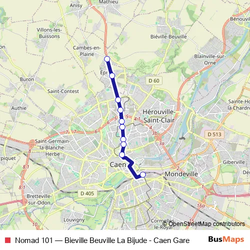 Bus Nomad 101 - Bieville Beuville La Bijude - Caen Gare: Full Schedule in Caen