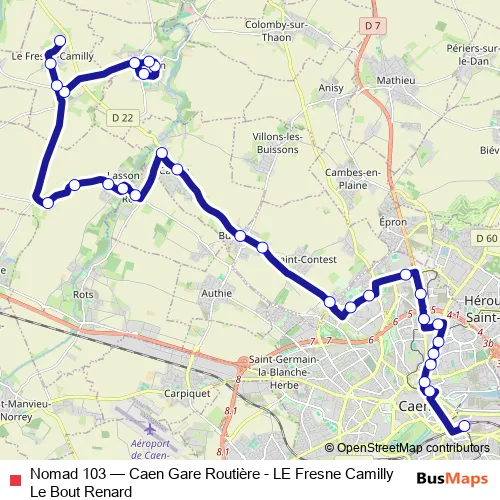 Bus Nomad 103 - Caen Gare Routière - LE Fresne Camilly Le Bout Renard Schedule in Caen
