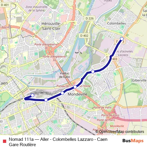Click here to view the nearest Nomad 111a - Aller - Colombelles Lazzaro - Caen Gare Routière bus stop.