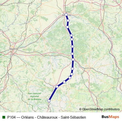 Click here to view the nearest P104 - Orléans - Châteauroux - Saint-Sébastien rail stop.