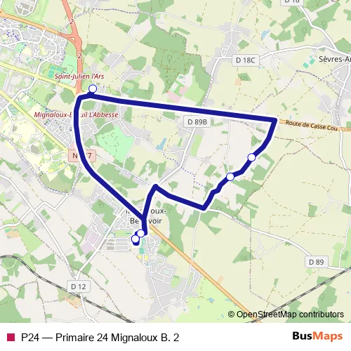 Click here to view the nearest P24 - Primaire 24 Mignaloux B. 2 bus stop.