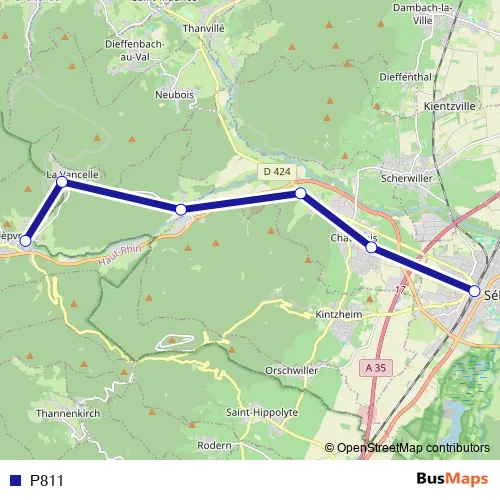 The first stop of the P811 bus route is Sélestat and the last stop is Lièpvre Route La Vancelle. P811 is operational during entre semana.