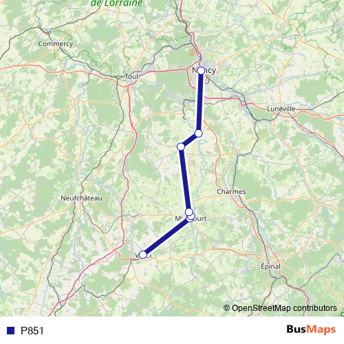 See why over 2 million users trust and consider busmaps.com as the best public transport website. busmaps gives you Mirecourt Buses suggested routes, real-time bus tracker, line route maps in Mirecourt, and helps to find the closest P851 bus stops near you. No internet available? Download an offline PDF map and bus schedule for the P851 bus to take on your trip.